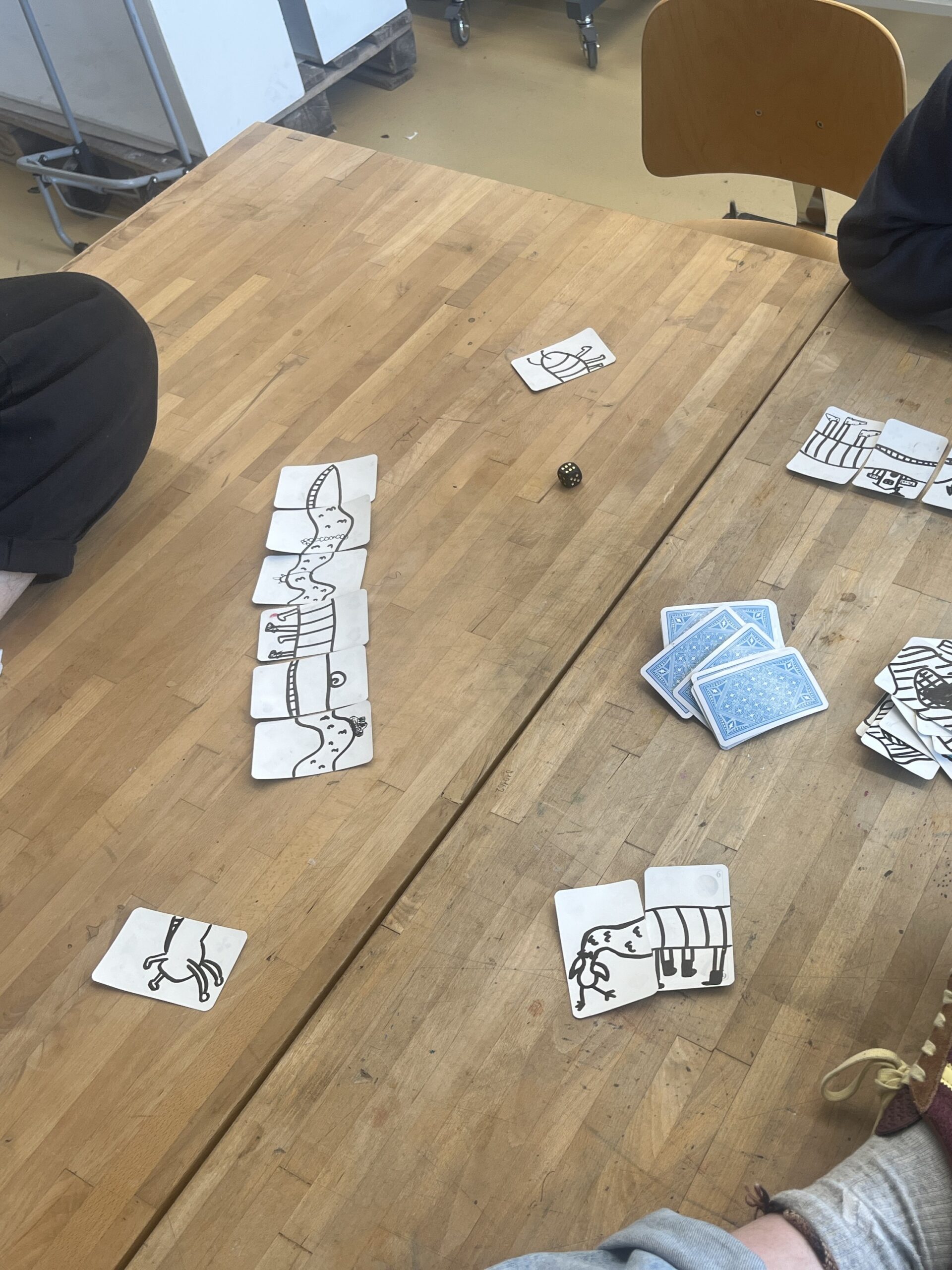 Wir haben getestet, gespielt und schnell wurde klar: Wir brauchen mehr Karten! Somit entstand ein weiterer Prototyp. Karten kamen dazu, Regeln wurden erfunden und wieder verworfen und viele spielfreudige Mitstudent:innen halfen uns die Spielmechaniken zu festigen.