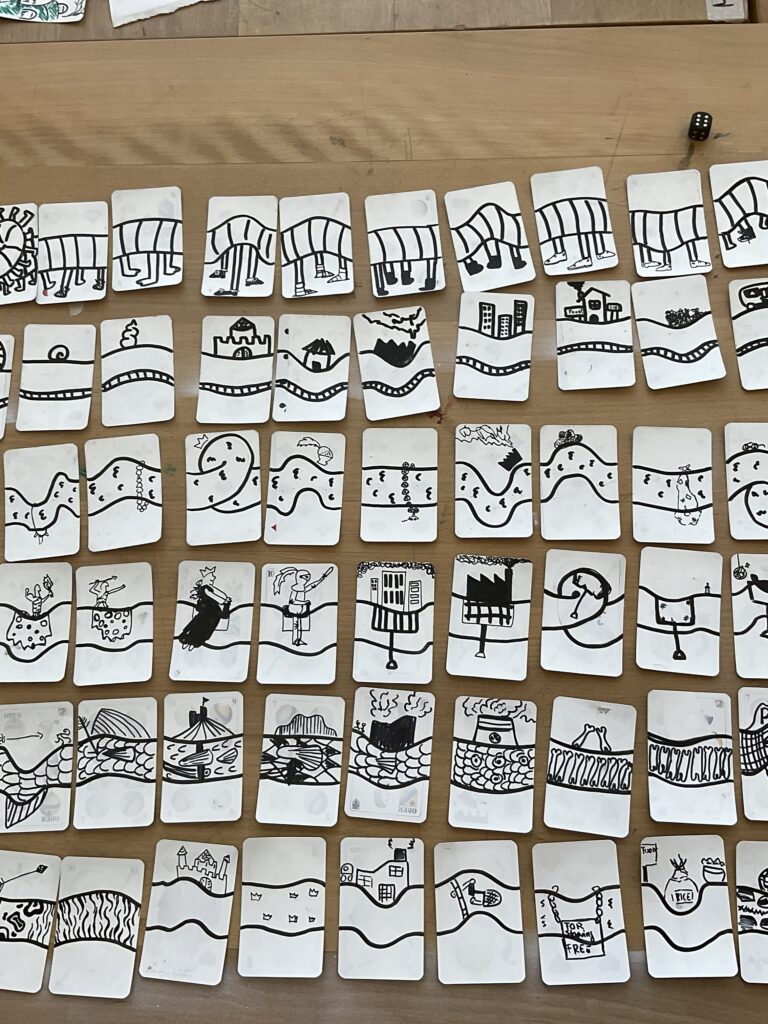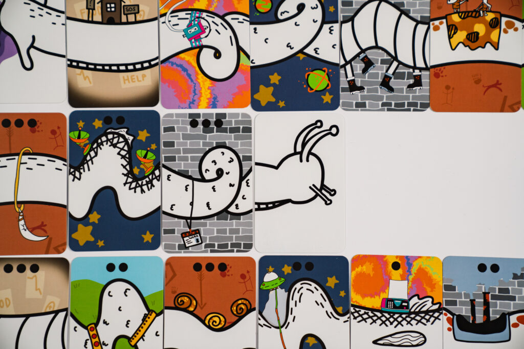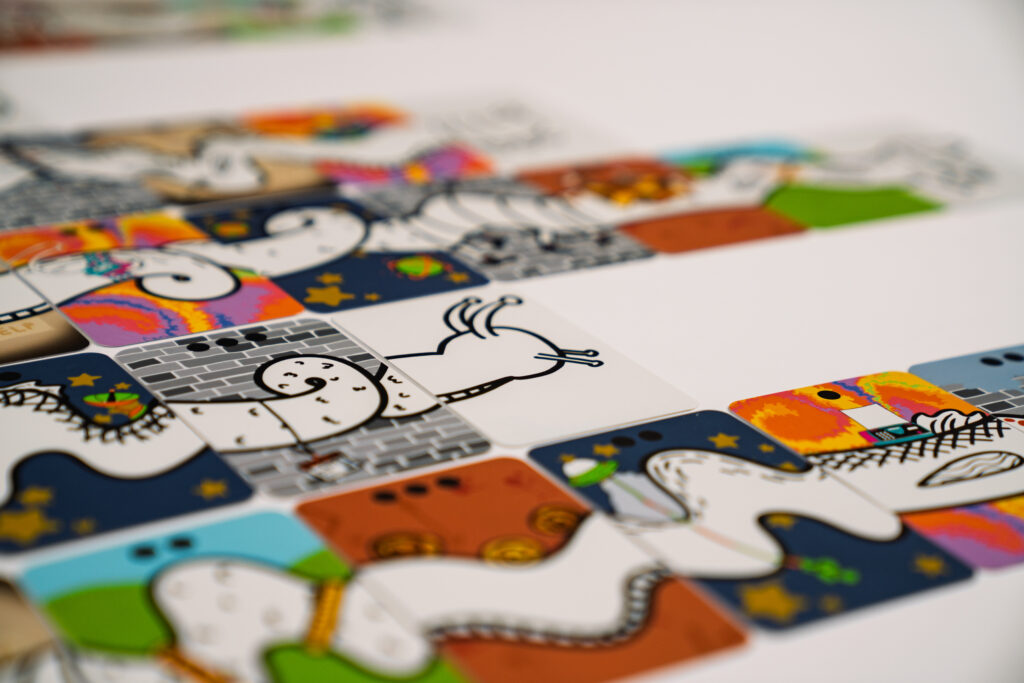 Nach dem Entwickeln der verschiedenen Karten und dem Bestimmen des Farbkonzepts hiess es zeichnen, zeichnen zeichnen! 94 einzigartige Kartendesigns mussten innerhalb weniger Tage umgesetzt werden.