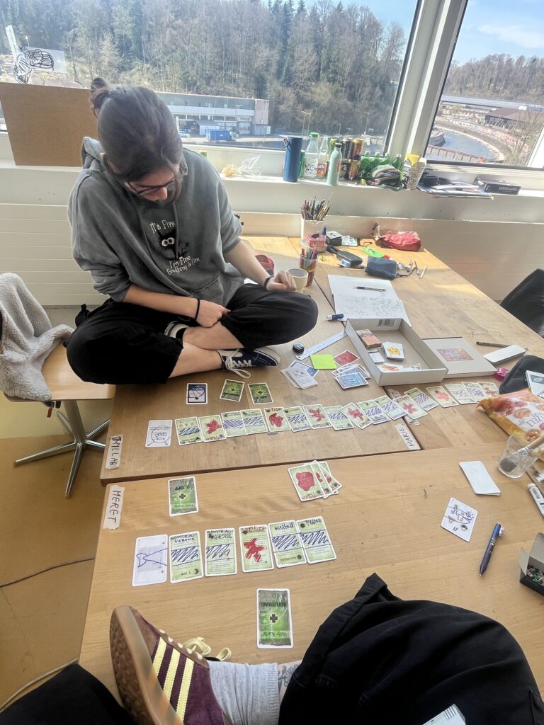 Wir haben getestet, gespielt und schnell wurde klar: Wir brauchen mehr Karten! Somit entstand ein weiterer Prototyp. Karten kamen dazu, Regeln wurden erfunden und wieder verworfen und viele spielfreudige Mitstudent:innen halfen uns die Spielmechaniken zu festigen.